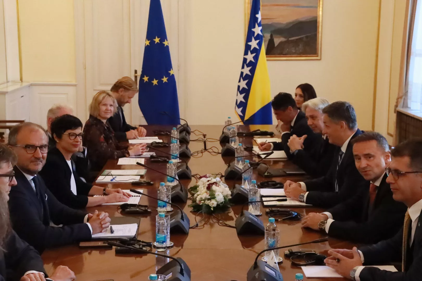 Na prvi sastanak komesarka Kos stigla je u zgradu Predsjedništva BiH, gdje se sastala s članom Predsjedništva Bosne i Hercegovine Denisom Bećirovićem.