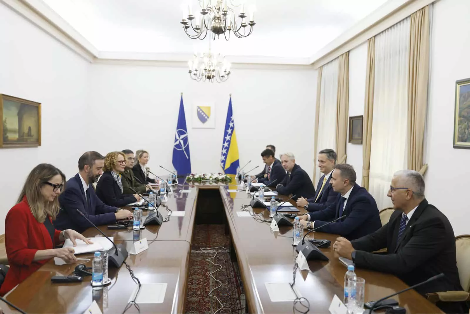 (Patria) - Član Predsjedništva BiH Denis Bećirović primio je jutros zamjenicu generalnog sekretara NATO-a Radmilu Šekerinska u zgradi Predsjedništva BiH.