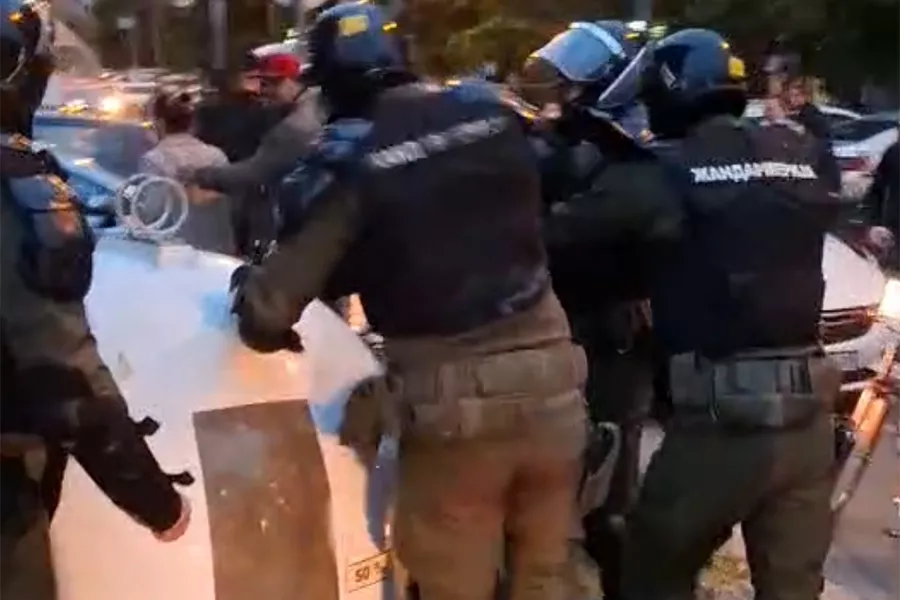 Jedana pripadnik žandaremrije oteo je ranije telefon novinaru Bete i Autonomije Daliboru Stuparu i otjerao ga dok je snimao okupljanja prorežimskih pristalica.