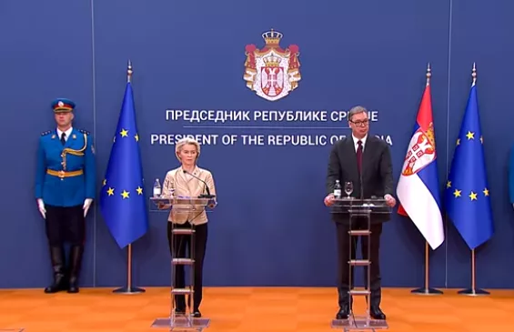 (Patria) - Predsjednica Evropske komisije Ursula von der Leyen rekla je na zajedničkoj konferenciji sa predsjednikom Srbije Aleksandrom Vučićem da stav Evropske unije podrazumijeva slobodu, a ne represiju, uključujuči pravo na mirno okupljanje.