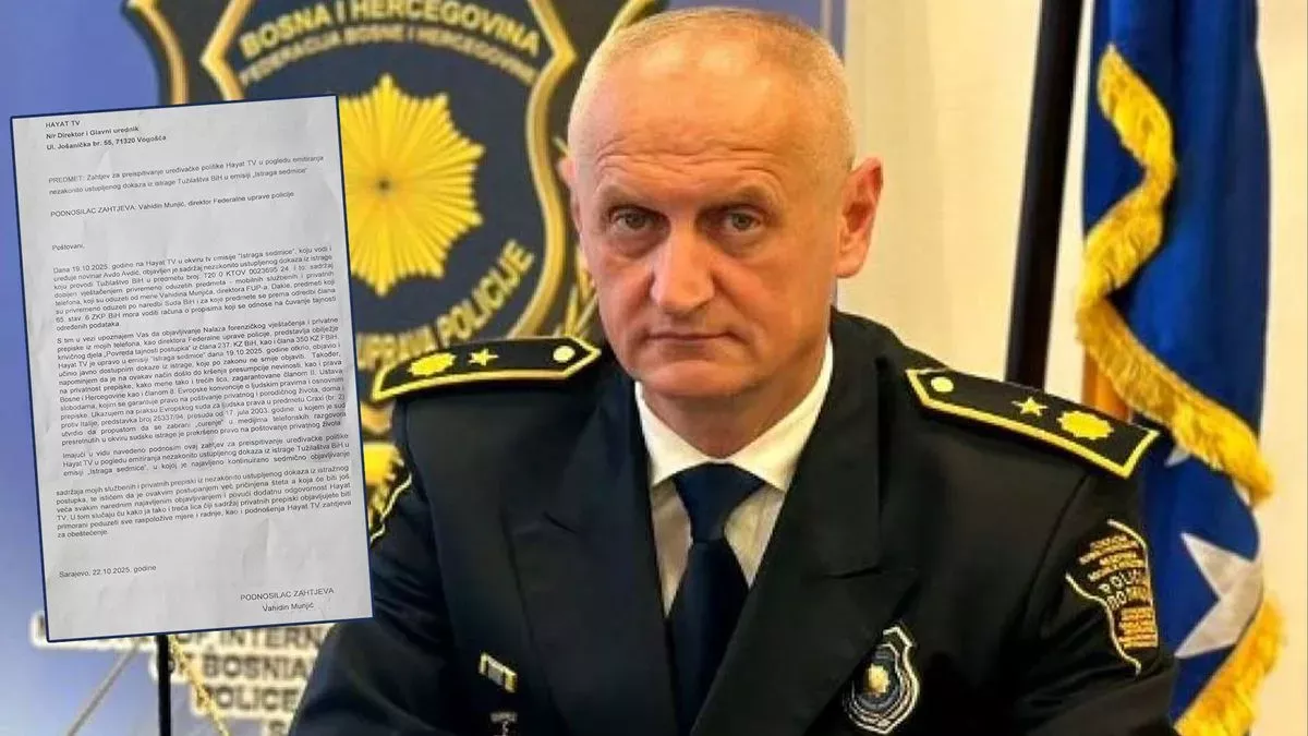 Dana 19.10.2025. godine na Hayat TV u okviru tv emisije "Istraga sedmice", koju vodi i uređuje novinar Avdo Avdić, objavljen je sadržaj nezakonito ustupljenog dokaza iz istrage koju provodi Tužilaštvo BiH u predmetu broj: T20 0 KTOV 0023695 24, i to: sadržaj dobijen vještačenjem privremeno oduzetih predmeta mobilnih službenih i privatnih telefona, koji su oduzeti od mene Vahidina Munjića, direktora FUP-a. Dakle, predmeti koji su privremeno oduzeti po naredbi Suda BiH i za koje predmete se prema odredbi člana 65. stav. 6 ZKP BiH mora voditi računa o propisima koji se odnose na čuvanje tajnosti određenih podataka.