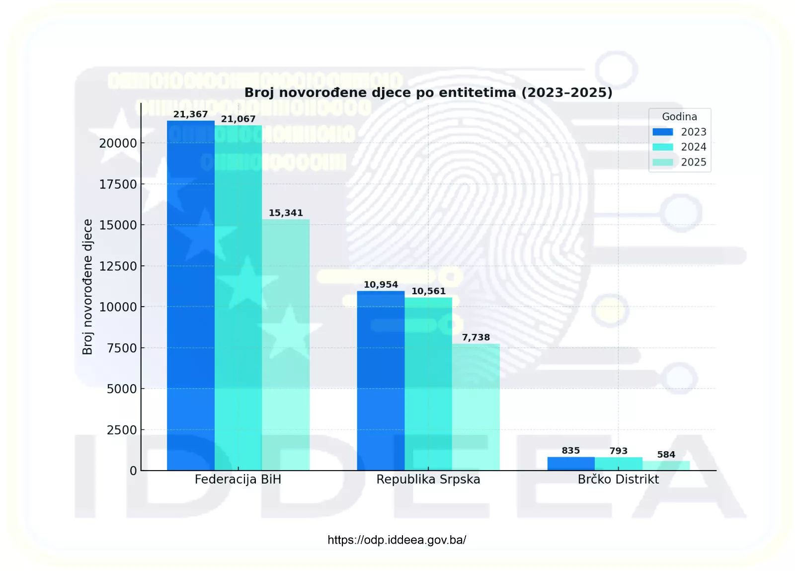 Ovi podaci ukazuju na nastavak trenda smanjenja broja novorođene djece u Bosni i Hercegovini, što predstavlja važan pokazatelj demografskih kretanja u zemlji, saopćeno je iz IDDEEA-e.