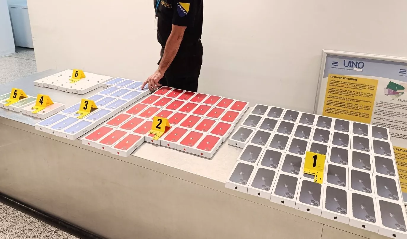 (Patria) - Službenici Uprave za indirektno oporezivanje spriječili su pokušaj krijumčarenja 123 mobilna telefona iPhone na Aerodromu Sarajevo.