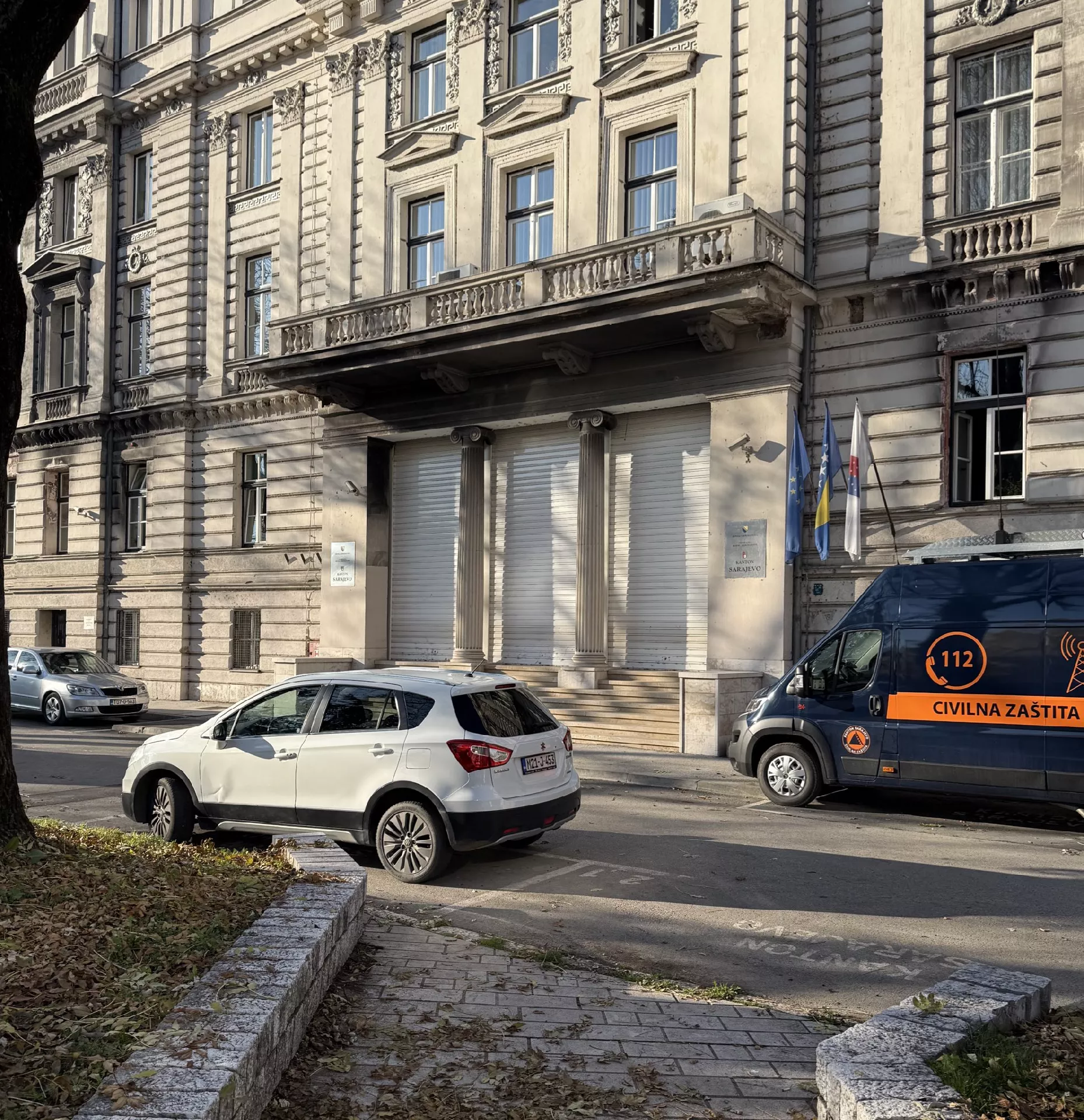 (Patria) - Zgrada Vlade Kantona Sarajevo je pod pojačanim sigurnosnim mjerama. Svečani ulaz u zgradu Vlade KS je zaštićen sigurnosnim roletnama, a oko zgrade su raspoređene policijske snage.