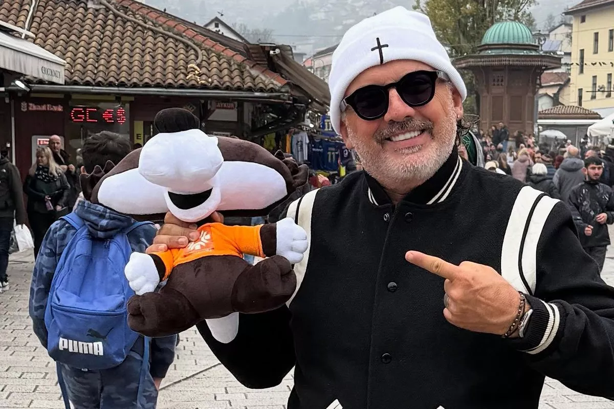 (Patria) - Poznati pjevač Tony Cetinski prošetao je Sarajevom u društvu legendarne maskote Vučka.
