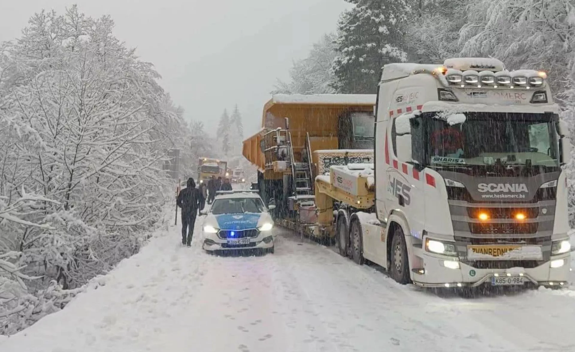 Zbog snježnih padavina iz BIHAMK-a mole vozače kamiona sa prikolicom i šlepera za korištenje zimske opreme preko prevoja Komar (Donji Vakuf-Travnik).