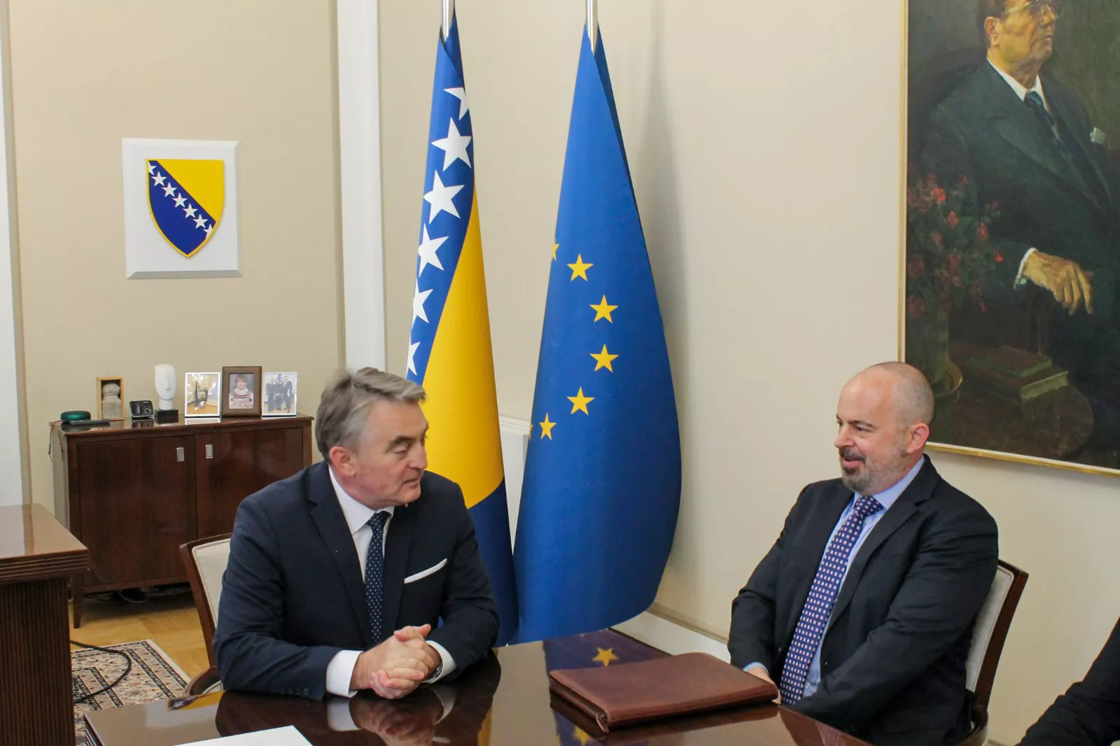 (Patria) - Predsjedavajući Predsjedništva Bosne i Hercegovine Željko Komšić razgovarao je s otpravnikom poslova Ambasade Sjedinjenih Američkih Država u BiH Johnom Ginkelom o Južnoj gasnoj interkonekciji
