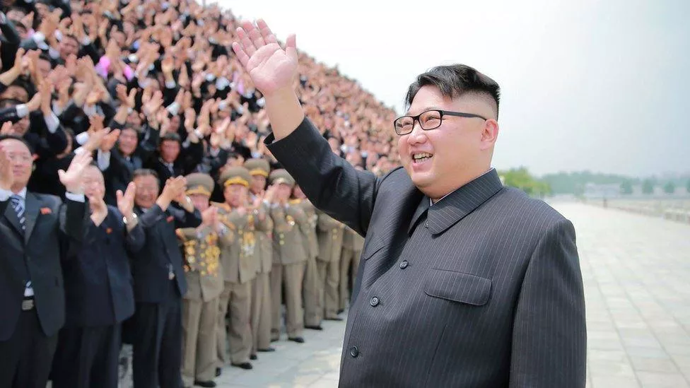 Fotografije koje je objavio sjevernokorejski list Rodong Sinmun prikazuju Kima kako posmatra ono što je izgledalo kao bespilotne letjelice i mobilne lansere raketa, između ostalog.