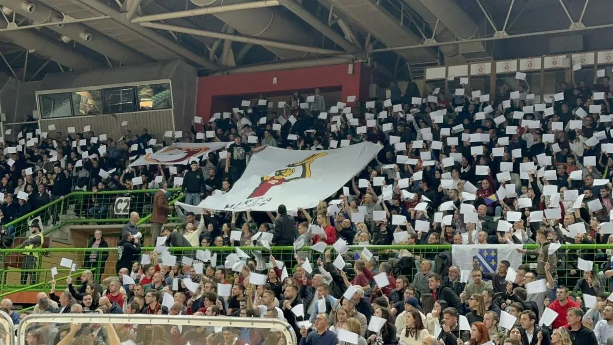 (Patria) - Početak večerašnjeg susreta KK Bosne i Crvene zvezde u Zetri obilježili su navijači koji su došli u velikom broju, a posebnom koreografijom odali su počast Mirzi Delibašiću Kinđetu koji je preminuo prije 24 godine.