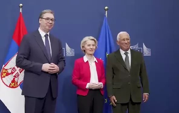 (Patria) - Predsjednik Srbije Aleksandar Vučić prisustvovao je u Briselu radnoj večeri koju su organizovali predsjednica Evropske komisije Ursula fon der Lajen i predsjednik Evropskog vijeća Antonio Kosta.