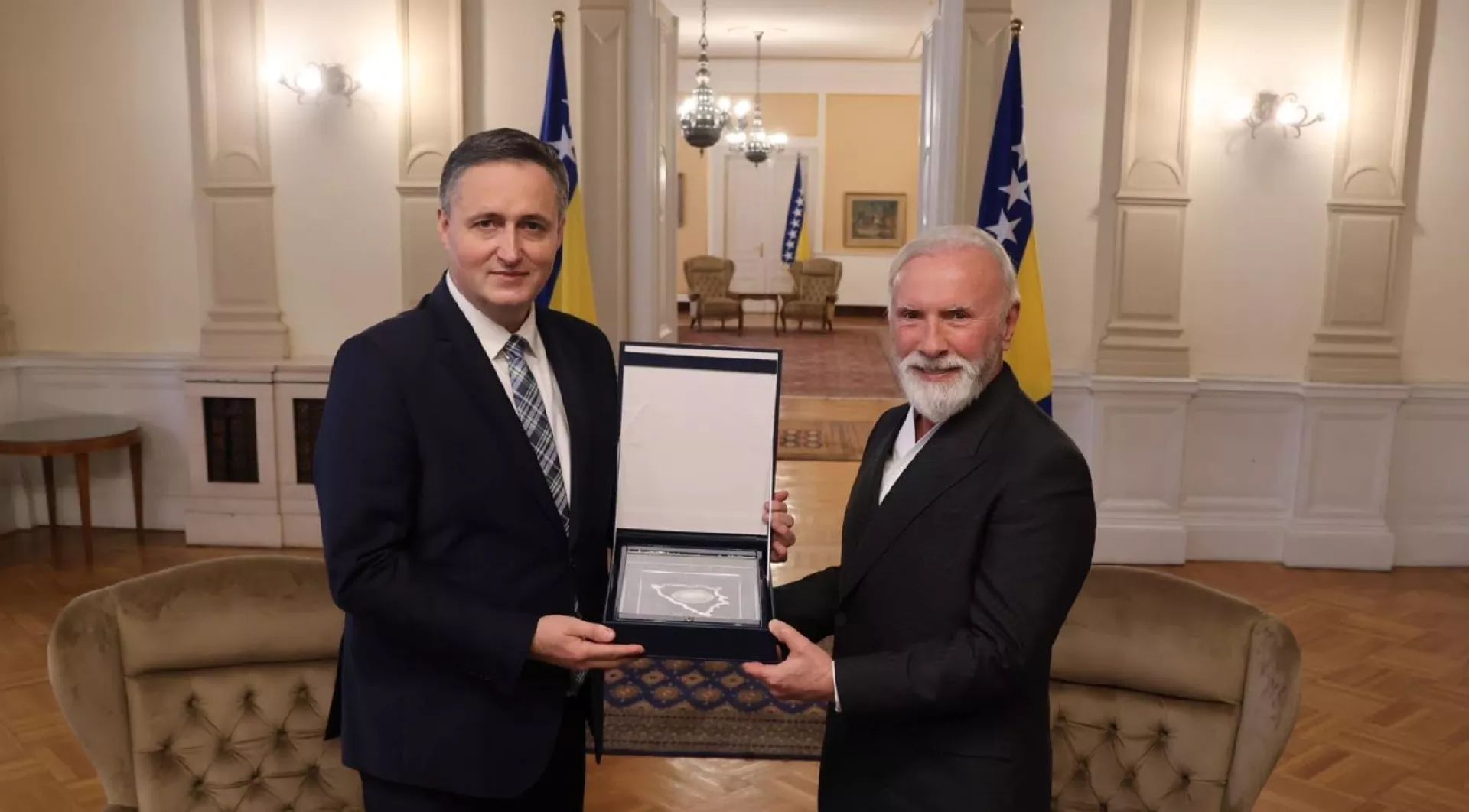 Bećirović je dodijelio priznanje Dini Merlinu za izuzetan umjetnički doprinos i afirmaciju Bosne i Hercegovine. Naglasio je da je Merlin umjetnik čije pjesme već decenijama povezuju ljude i jačaju osjećaj pripadnosti Bosni i Hercegovini.
