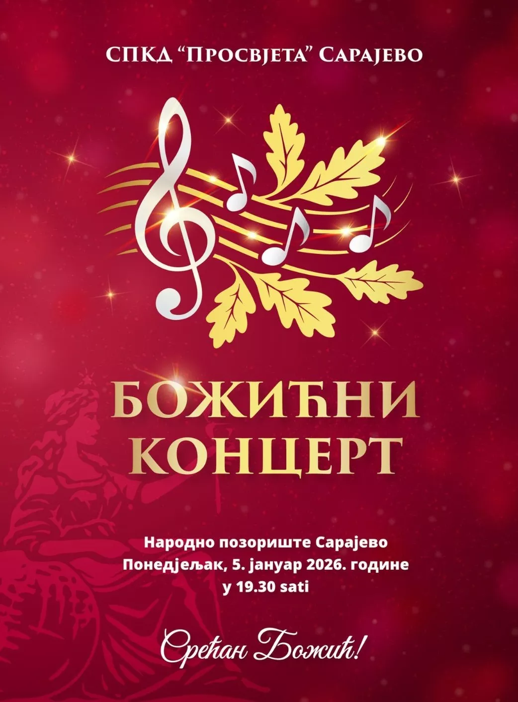 (Patria) - U Narodnom pozorištu Sarajevo 5. januara bit će održan XVI Božićni koncert u organizaciji Srpskog prosvjetnog i kulturnog društva „Prosvjeta“ Sarajevo.