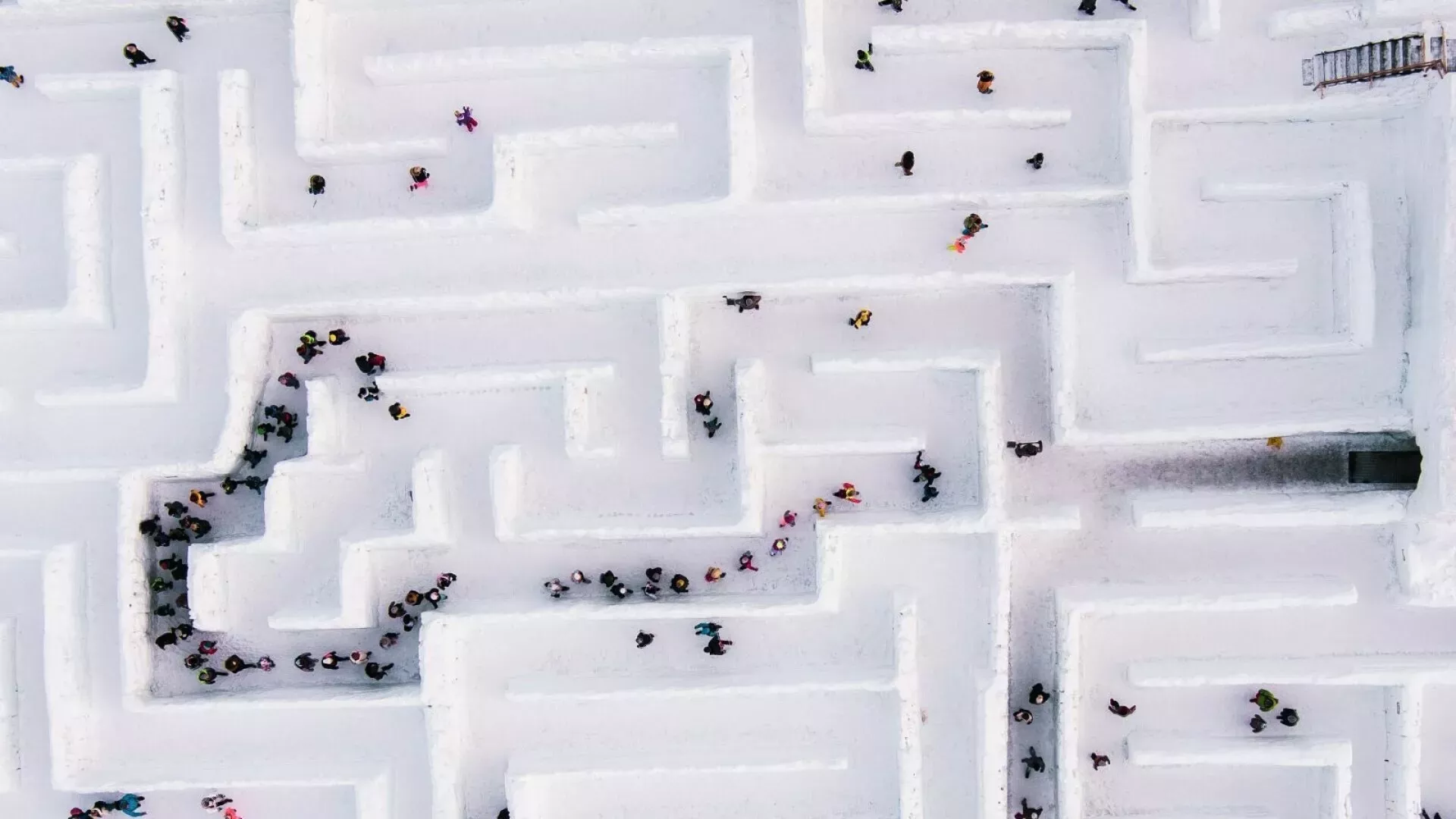 Labirint je izgrađen od 60.000 blokova zbijenog snijega, baš onako kako se iglui i grade, a posjetitelji se u labirintu "gube" otprilike sat vremena.