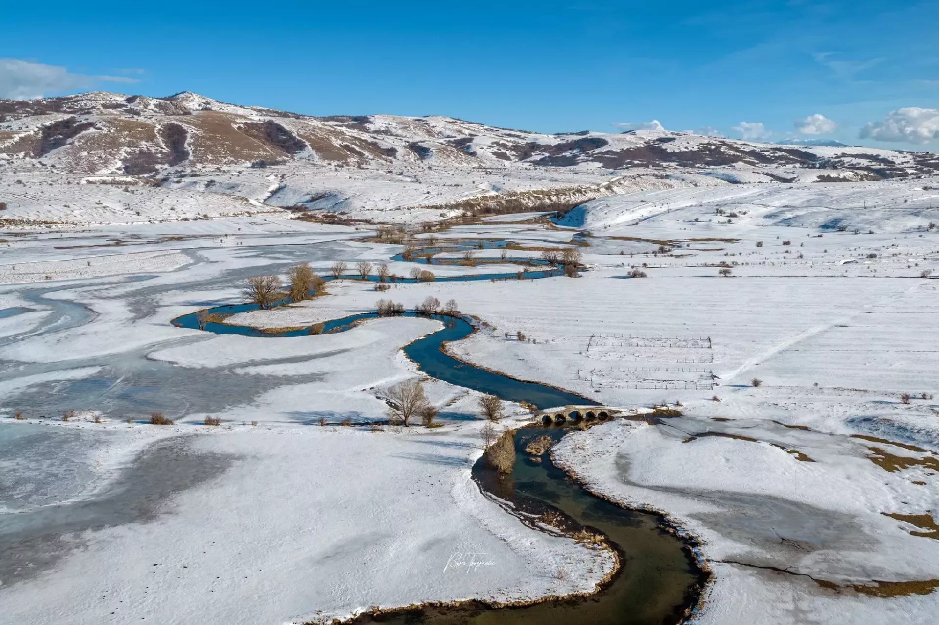 (Patria) - Poznati fotograf Boris Trogrančić objavio je galeriju fotografija i videozapis rijeke Šuice okovane snijegom i ledom, koju je bh. putopisac Zuko Džumhur svojevremeno opisao najkrivudavijom na svijetu.