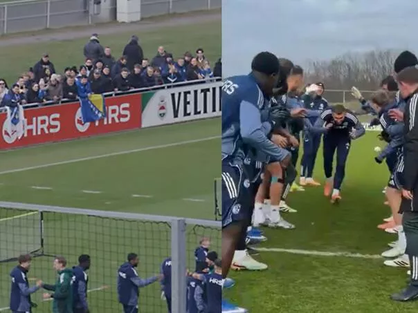 Na treningu u svom centru, tim Schalkea pripremio je neobičnu dobrodošlicu za Dijamanta.