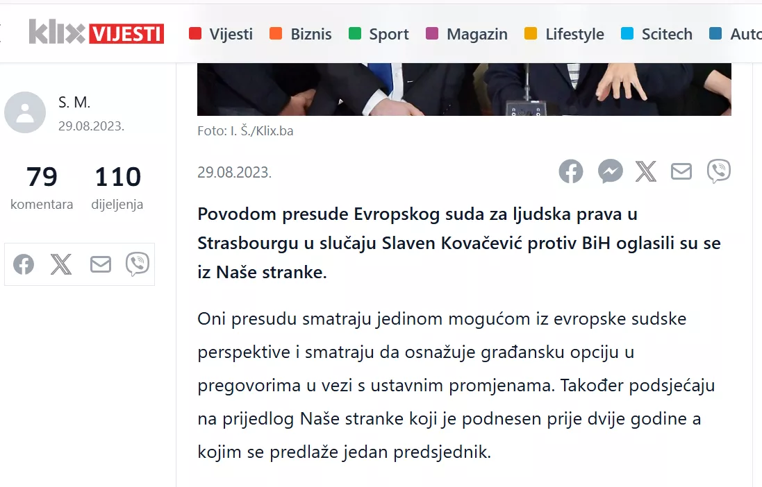 Licemjerje na maksimumu Naše stranke vidjelo se u dvije odluke u istom predmetu. Kada je 2023. godine ESLJP presudio u korist Kovačevića, iz Naše stranke su poručili da je to “jedino moguće”.