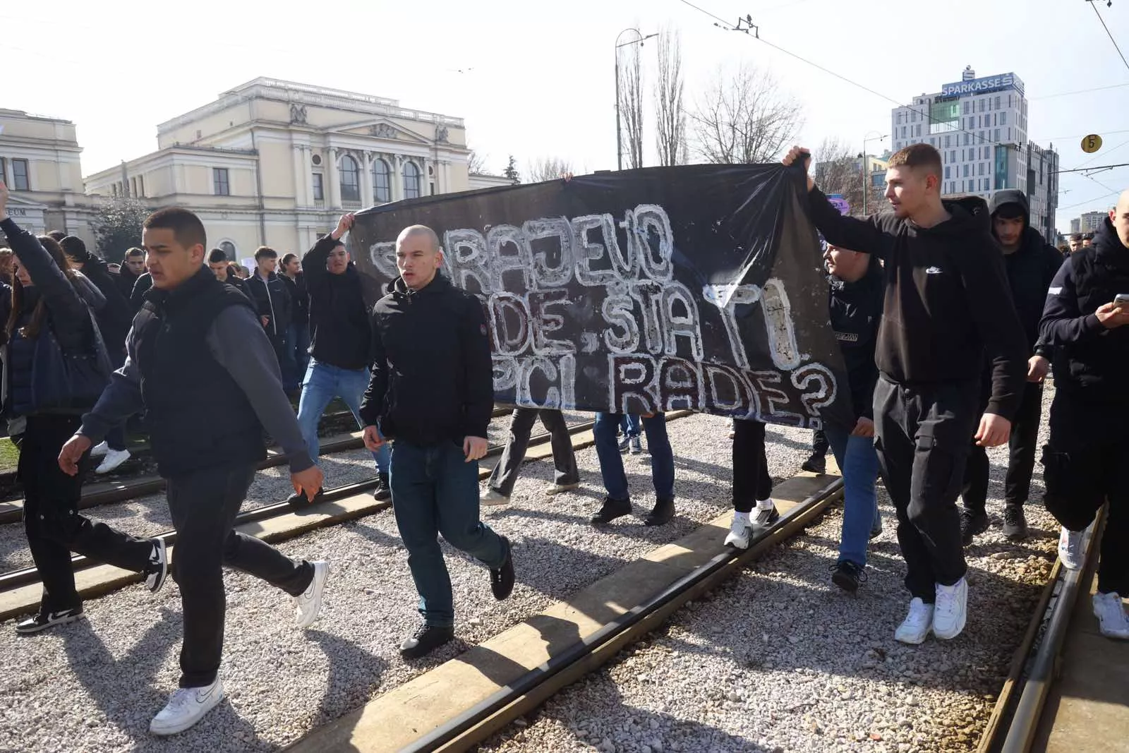 Okupljanje je ponovo počelo ispred Zemaljskog muzeja Bosne i Hercegovine, odakle su studenti i srednjoškolci krenuli u protestnu šetnju.
