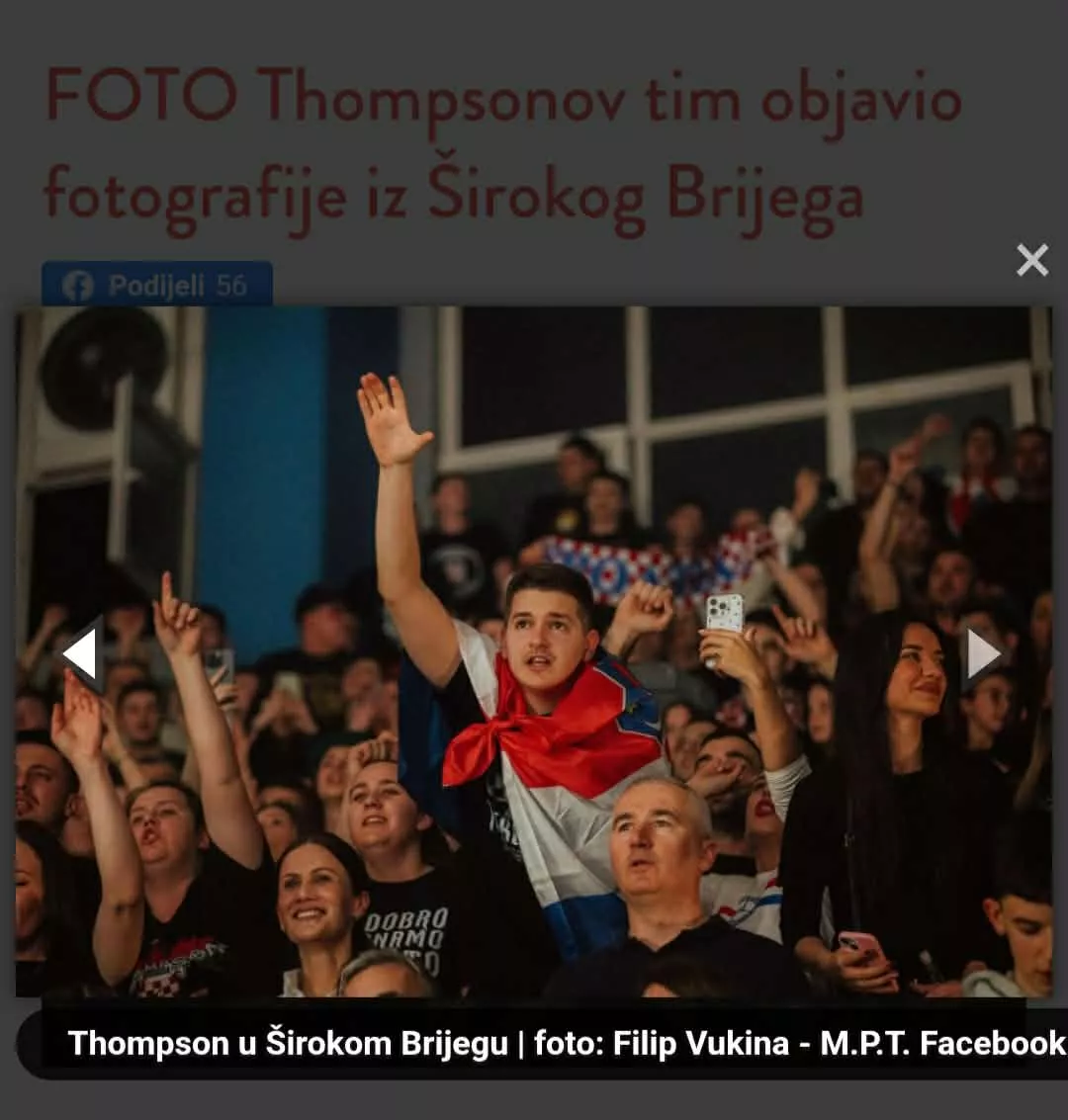Koncert Marka Perkovića Thompsona koji je održan u Širokom Brijegu u sportskoj dvorani Pecara pratilo je veličanje ustaškog režima, kroz pjesmu i simboliku kao i gestikulacije prisutnih, režima odgovornog za stotine hiljada nevino ubijenih. Naknadno je reagirala izraelska nerezidentna ambasadorica za Bosnu i Hercegovinu Galit Peleg, koja je osudila dešavanja na koncertu.
