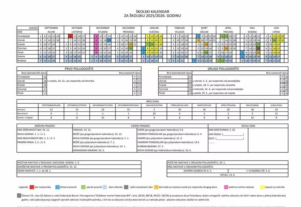No, u školskom kalendaru za 2025/2026. godinu Ministarstvo za odgoj i obrazovanje označilo je 2. mart kao neradni dan zbog državnog praznika.