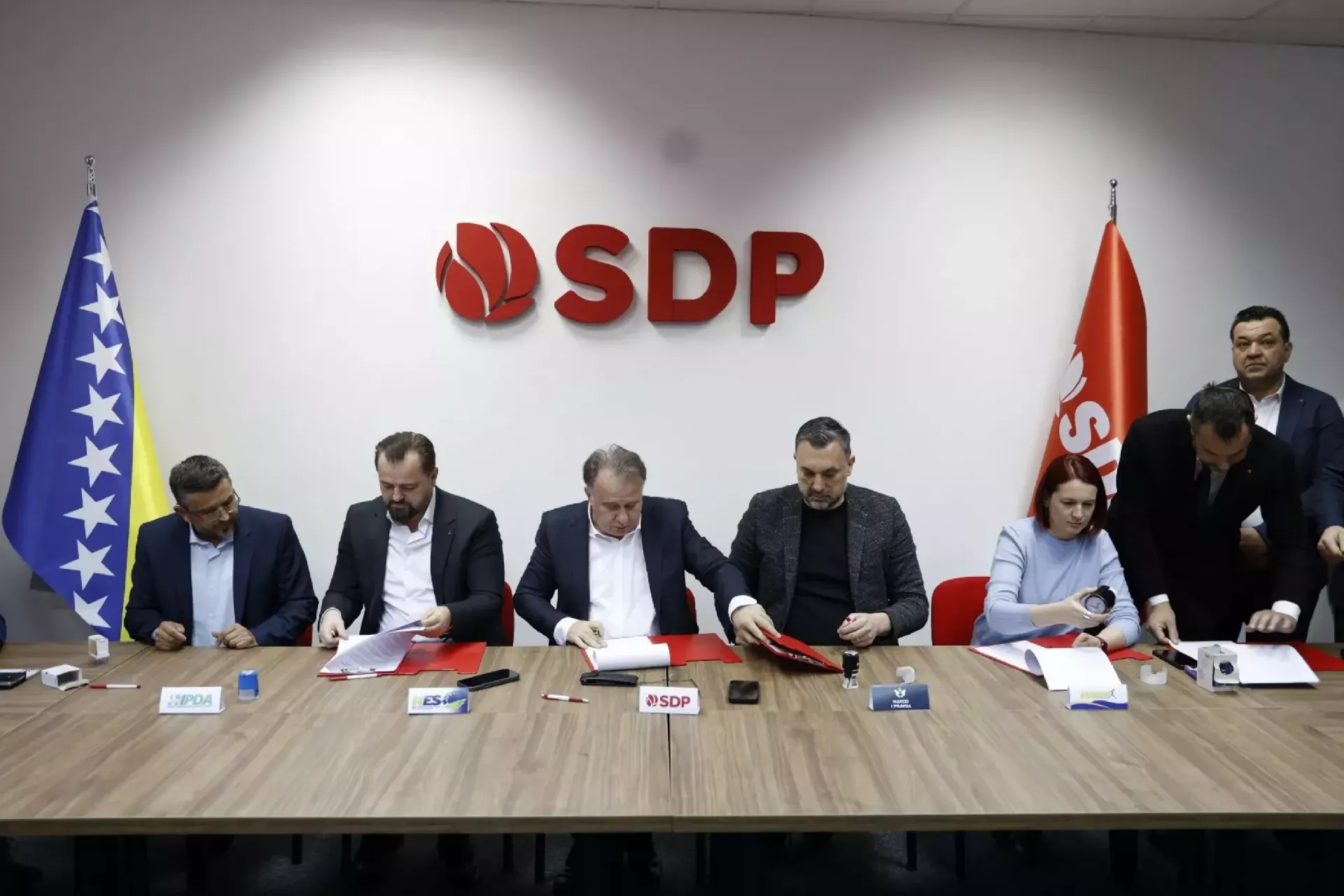 (Patria) - SDP BiH, NiP, NES, Naprijed i PDA danas su u Banjoj Luci potpisali koalicioni sporazum o zajedničkom nastupu na Općim izborima 2026. godine u Rs.