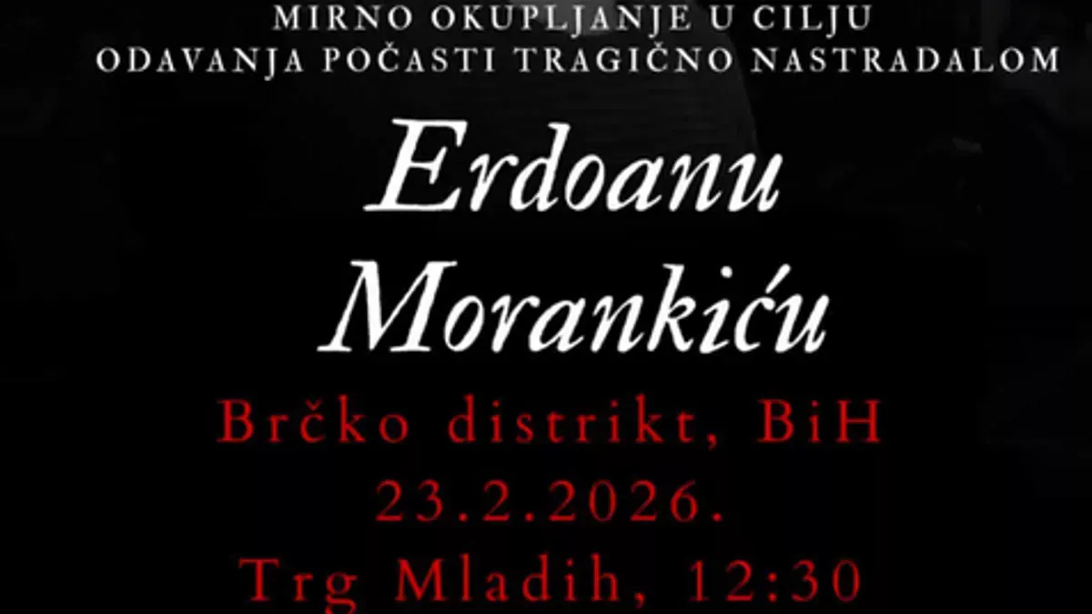 (Patria) - Građani Brčko distrikta organizuju mirno i dostojanstveno okupljanje pod nazivom „Zajedništvo u tišini“, koje će se održati u ponedjeljak, 23. februara, s ciljem odavanja počasti tragično nastradalom sugrađaninu Erdoanu Morankiću.