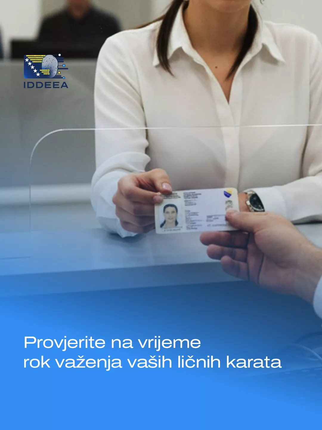 Iz IDDEEA-e podsjećaju građane da redovno provjeravaju rok važenja svojih dokumenata i blagovremeno podnesu zahtjev za izdavanje nove lične karte kako bi izbjegli eventualne neugodnosti.