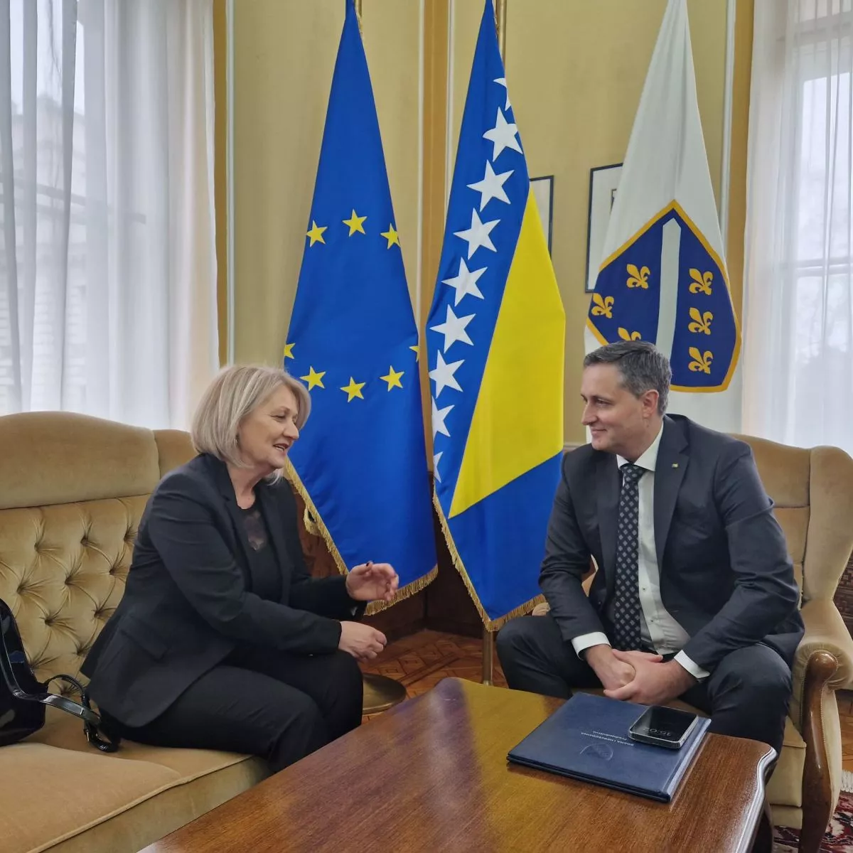 (Patria) - Član Predsjedništva Bosne i Hercegovine Denis Bećirović razgovarao je sa predsjedavajućom Vijeća ministara BiH Borjanom Krišto u svom kabinetu.