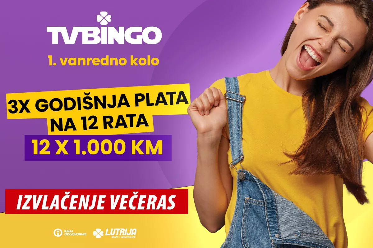 (Patria) - Lutrija Bosne i Hercegovine pripremila je ovogodišnje prvo vanredno kolo igre TV Bingo, a izvlačenje brojeva je večeras u direktnom programu FTV-a sa početkom u 20:10 sati.