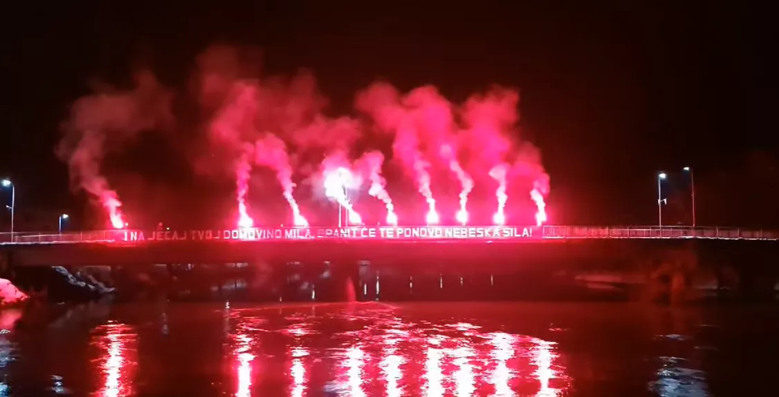 U Bosanskoj Krupi BH Fanaticosi napravili su bakljadu na mostu preko Une uz poruku: "I na jecaj tvoj domovino mila, branit će te ponovo nebeska sila".