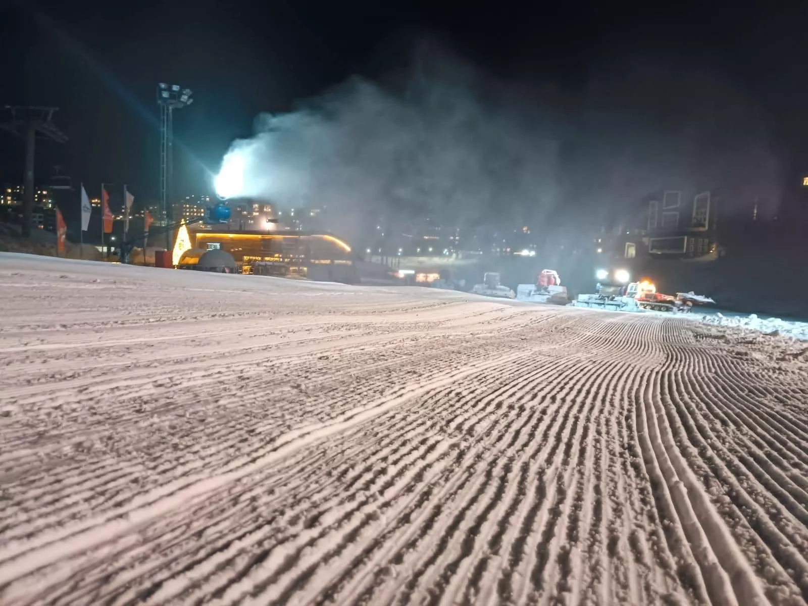 "Ekipa od 40-ak ljudi ručno je nanosila snijeg na dijelove staze koji nisu pokriveni topovima, a tokom prošle sedmice sistem osnježenja radio je neprekidno, ali zbog nedovoljno niskih temperatura teško je osposobiti cijelo skijalište, pa imajte razumijevanja još koji dan.