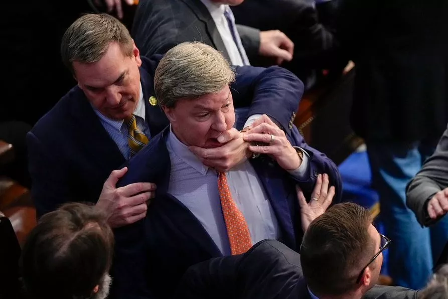 Wild scene as Rep. Mike Rogers has to be physically restrained by another member while going after Gaetz as McCarthy tries to secure final votes pic.twitter.com/c0u2lZxgYr