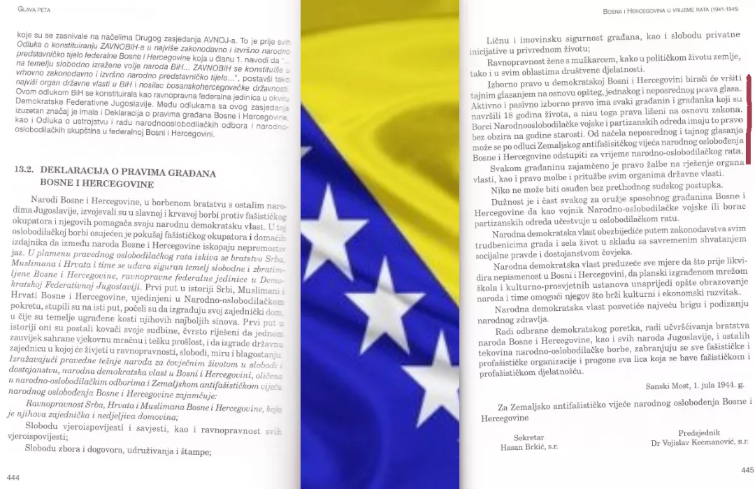 Za današnje vrijeme i današnji politički kontekst, mnogo je značajnija Deklaracija o pravima građana Bosne i Hercegovine, sa Drugog zasjedanja ZAVNOBiH-a, održanom u Sanskom Mostu, 1944. godine. U toj Deklaraciji, usvojeno je da svaki građanin i građanka sa navršenih 18 godina života mora imati aktivno i pasivno biračko pravo. Donošenjem ove Deklaracije ZAVNOBiH-a udareni su temelji za ostvarivanje potpune jednakopravnosti svih građana Bosne i Hercegovine, posebno u domenu njihovog neposrednog i jednakog učešća u izbornom sistemu, piše Patria.