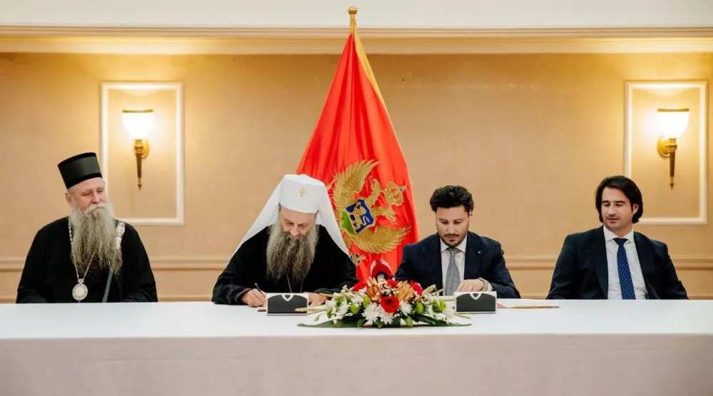 Današnjem potpisivanju Ugovora prisustvovali su mitropolit crnogorsko primorski Joanikije i ministar pravde Marko Kovač.