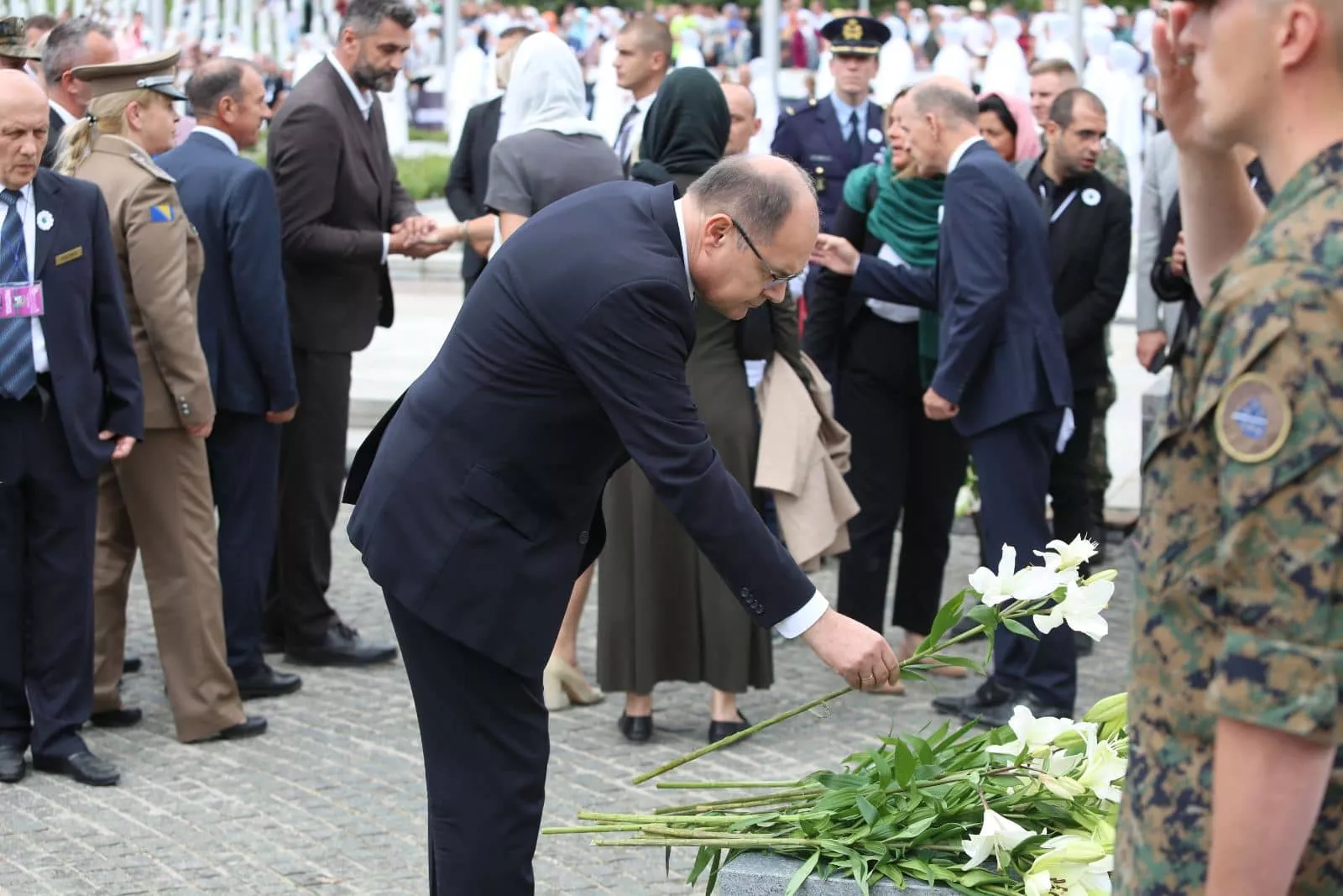 (Patria) - Nakon komemoracija delegacije su položile cvijeće na spomen-obilježje u krugu mezarja u Potočarima za žrtve genocida u Srebrenici.