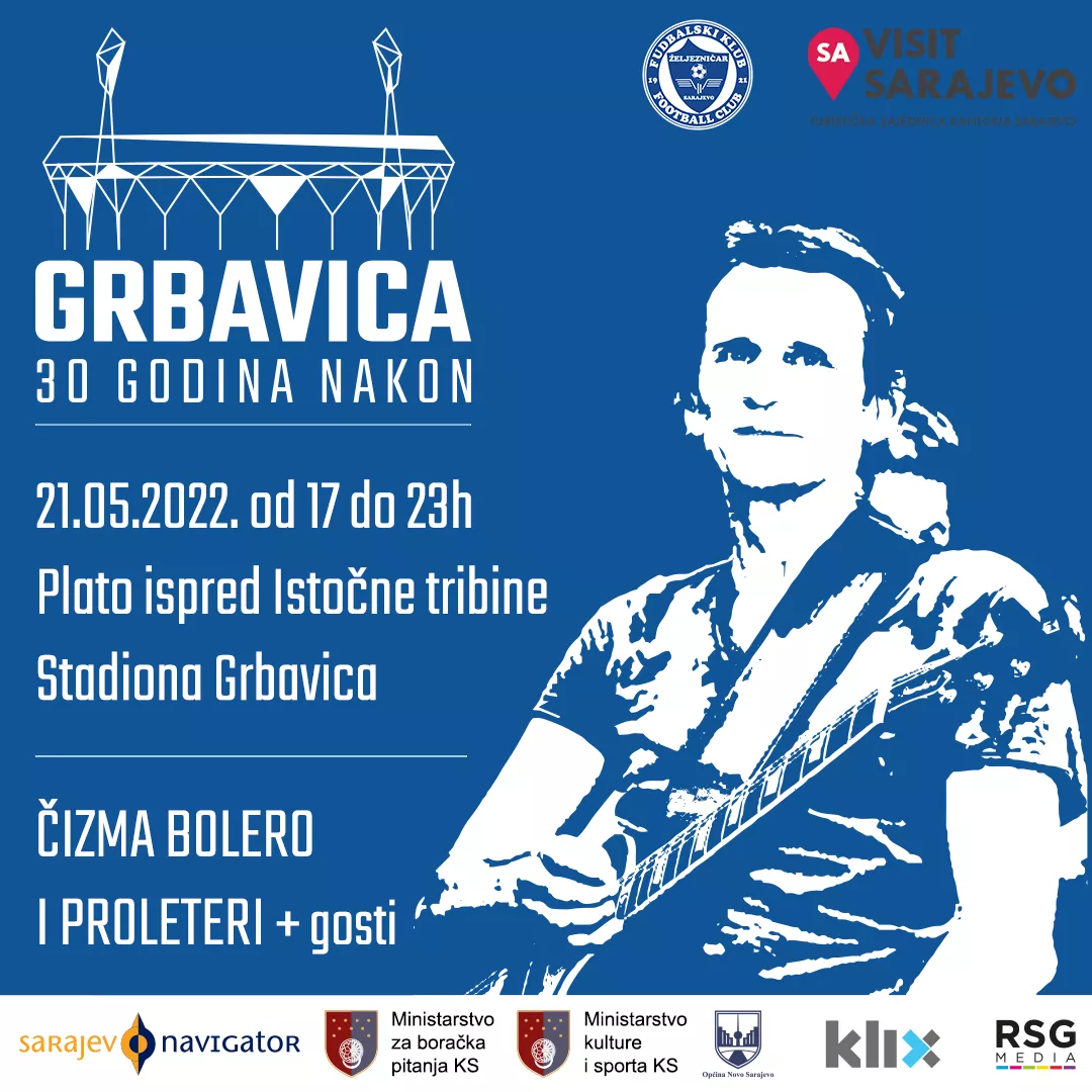 (Patria) - Na platou uz istočnu tribinu stadiona „Grbavica“ će večeras, u subotu 21. maja, u sklopu projekta „Grbavica – 30 godina nakon“ biti održan koncert „zlatnog sarajevskog momka“, Mustafe Čizmića – Čizme i njegovih „Proletera“, uz učešće brojnih gostiju.