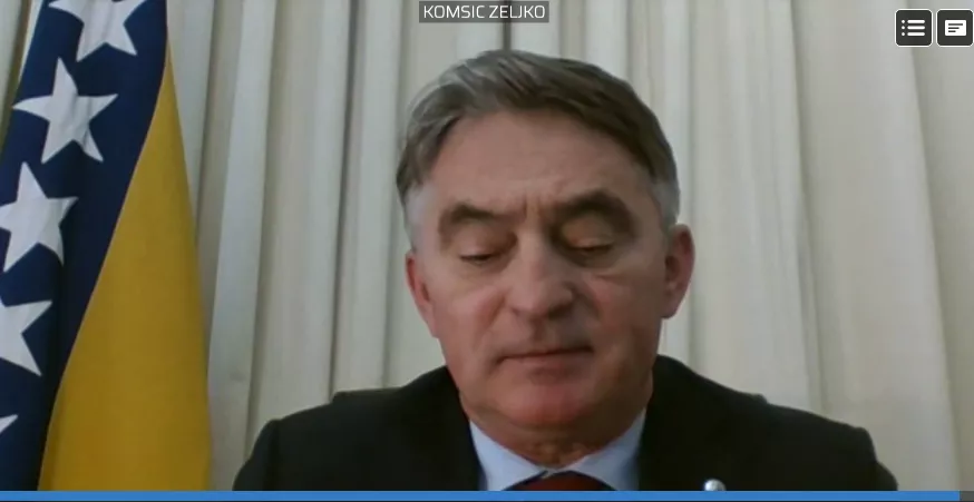 U svjetlu trenutnih dešavanja na evropskom kontinentu, podsjećam da je Rusija, do agresije na Ukrajinu, bila najveći zagovornik ovog stanja u BiH iz jednostavnog razloga – to je bilo stanje „zamrznutog konflikta“ koje je Rusiji odgovaralo kao izvor problema za NATO ali i EU. Rusija je zapravo pravilno procijenila da „zamrznuti konflikti“ na zapadnom Balkanu, a time i u mojoj zemlji predstavljaju sigurnosni rizik za NATO i EU i bila je najveći zagovornik zadržavanja sadašnjeg stanja", rekao je Komšić.
