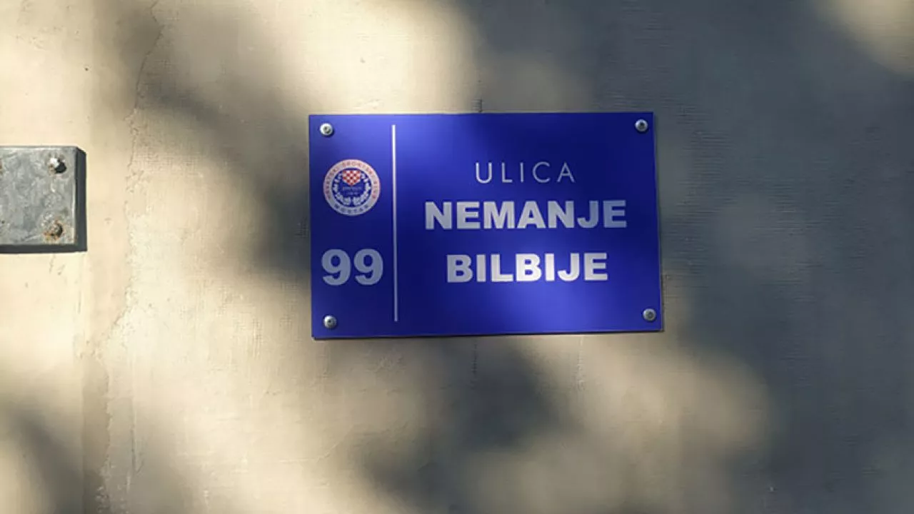 SARAJEVO, (Patria) - Javnost, ali i mostarski vijećnici čini se, su podijeljeni oko postavljene ploče u Mostaru - na kojoj piše ''ulica Nemanje Bilbije''. Mostarska vijećnica Prve mostarske partije Adela Gosto reagirala i istaknula da je pozvala inspekciju na skidanje ''nelegalno, mimo svih zakona postavljene table''.