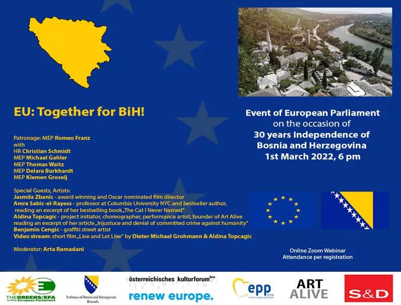 SARAJEVO, (Patria) - Evropska unija: Zajedno za BiH naziv je teme današnjeg panela u Evropskom parlamentu koji se organizuje povodom 1. marta Dana nezavisnosti i 30 godina funkcionisanja nezavisne države BiH.