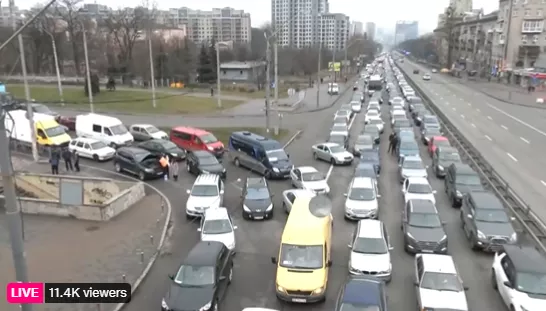 Britanska agencija Reuters emituje uživo video na kojem se vidi saobraćajni kolaps u Kijevu.
