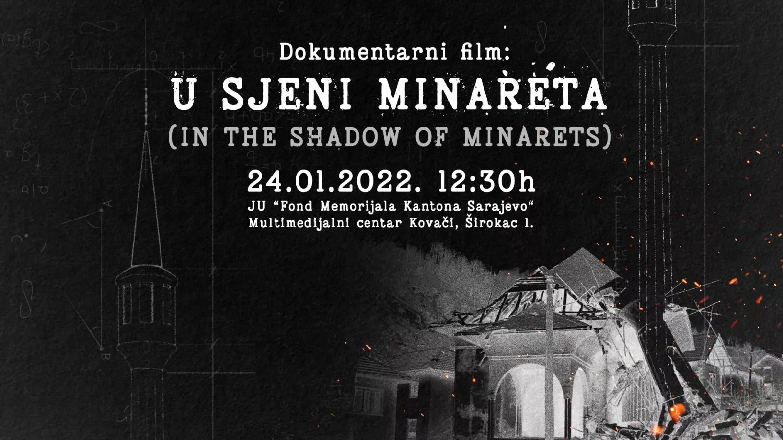 SARAJEVO, (Patria) - U organizaciji JU ''Fond Memorijala Kantona Sarajevo'' i Memorijalnog centra Srebrenica, u prostorijama Memorijalnog centra Kovači u Sarajevu u ponedjeljak će sa početkom u 12:30 sati biti premijerno prikazan dokumentarni film 'U sjeni minareta', autora Hasana Hasanovića, kustosa Memorijalnog centra Srebrenica.