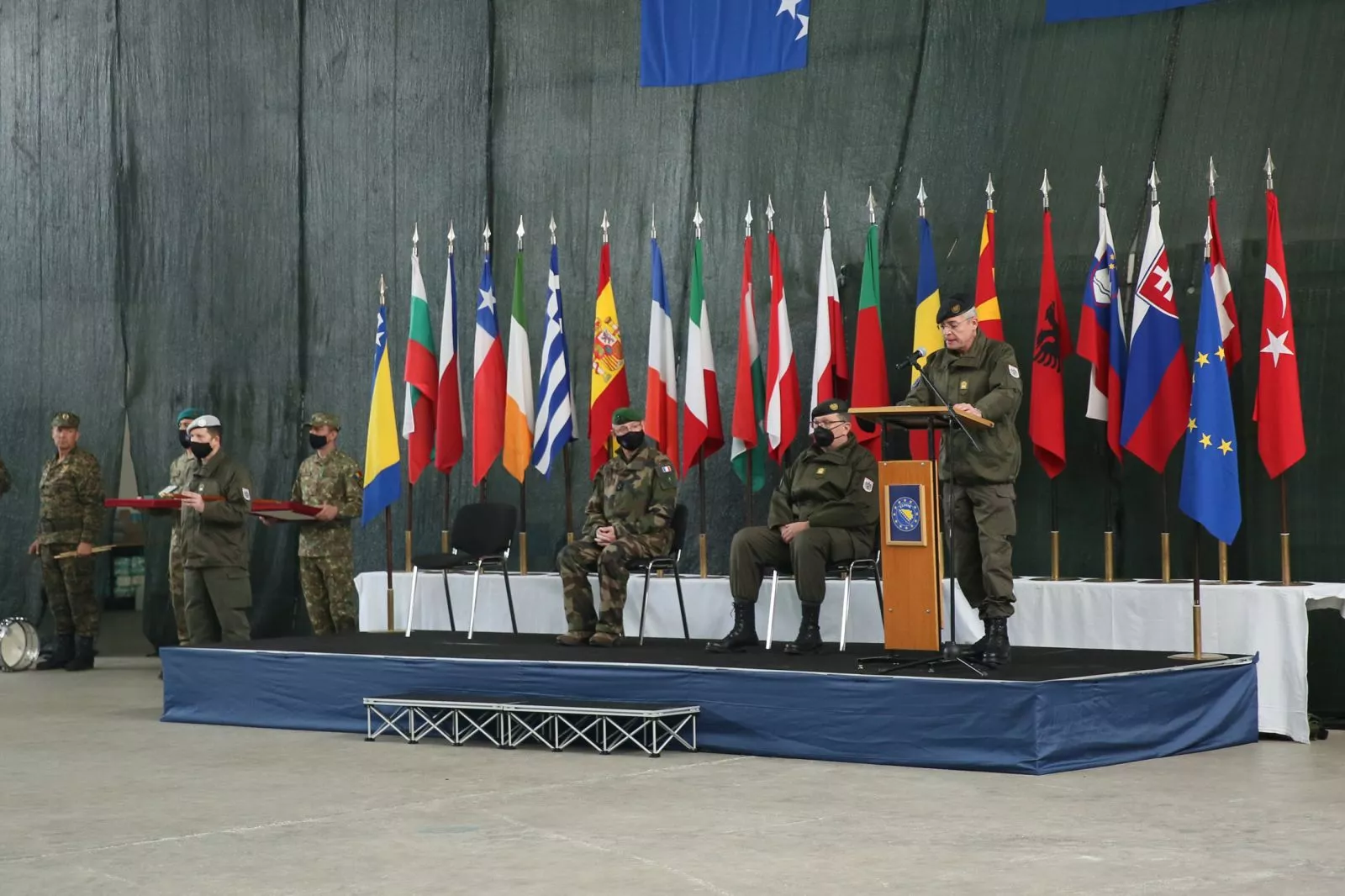 Tokom vojne svečanosti, operativni komandant Operacije Althea Evropske unije generalpukovnik Brice Houdet izvršio je simboličnu primopredaju zastave EUFOR-a između generalmajora Platzera i generalmajora Wesselog. Nakon toga, generalmajoru Platzeru dodijeljena je medalja za zajedničku sigurnosnu i odbrambenu politiku Evropske unije za Operaciju Althea.