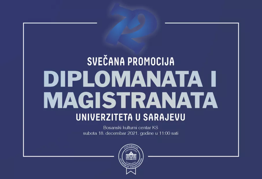 SARAJEVO; (Patria) - Svečana promocija diplomanata i magistranata Univerziteta u Sarajevu bit će održana u danas, sa početkom u 11:00 sati u Bosanskom kulturnom centru (BKC).