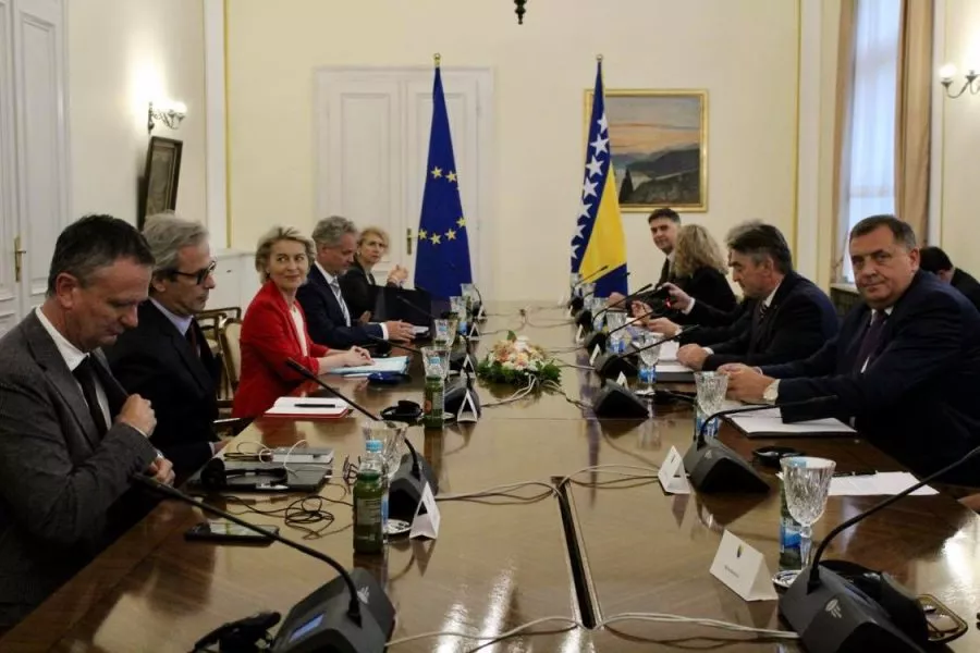 SARAJEVO, (Patria) - Predsjednica Evropske komisije Ursula fon der Lejen (Von der Leyen) podržava evropski put Bosne i Hercegovine i svih zemalja zapadnog Balkana što je potvrdila i na današnjem sastanku s predsjedavajućim i članovima Predsjedništva Bosne i Hercegovine Željkom Komšićem, Šefikom Džaferovićem i Miloradom Dodikom.
