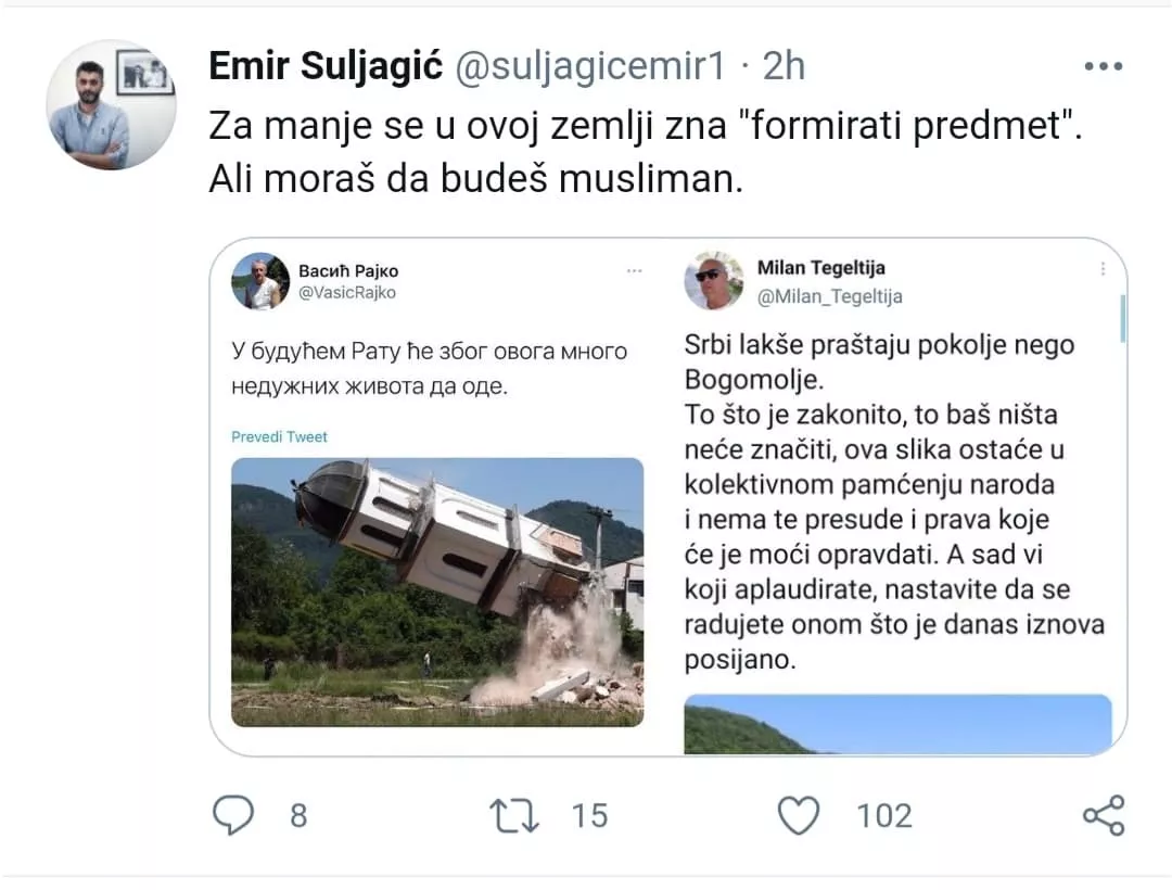 “Za manje se u ovoj zemlji zna ‘formirati predmet’. Ali moraš da budeš musliman”, napisao je Suljagić.