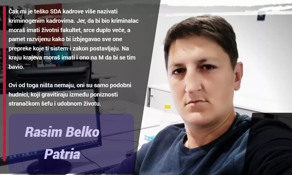 Čak mi je teško SDA kadrove više nazivati kriminogenim kadrovima. Jer, da bi bio kriminalac moraš imati životni fakultet, srce duplo veće, a pamet razvijenu kako bi izbjegavao sve one prepreke koje ti sistem i zakon postavljaju. Na kraju krajeva moraš imati i ono na M da bi se tim bavio.