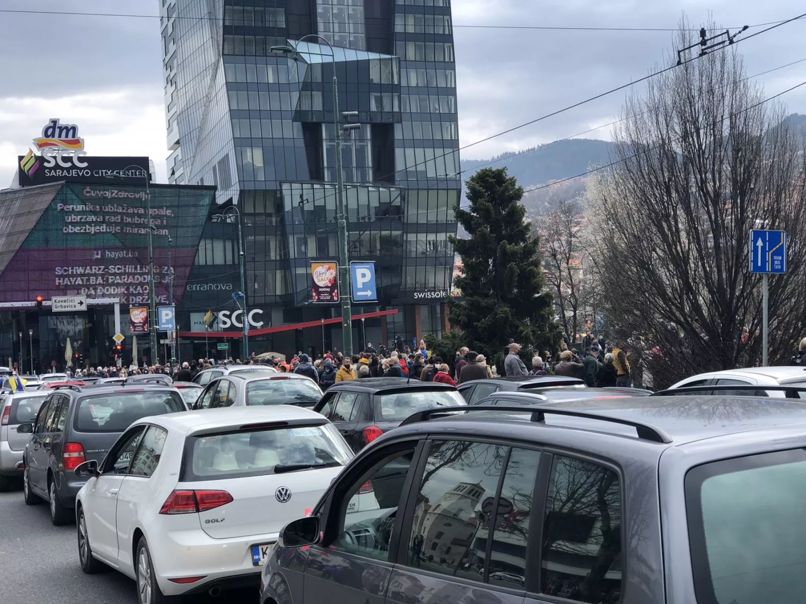 Građani su se okupili pred Parlamentom BiH noseći transparente sa različitim parolama, a stigli su i automobili.