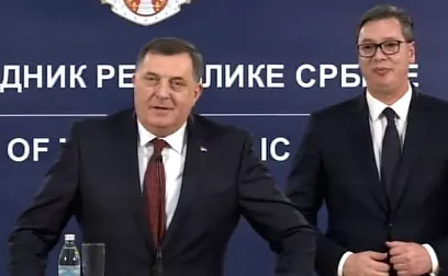 BEOGRAD, (Patria) - Nakon sastanka člana Predsjedništva BiH Milorada Dodika i predsjednika Srbije Aleksandra Vučića izjavu za medije dao je samo Dodik ističući da su razgovarali o različitim temama.