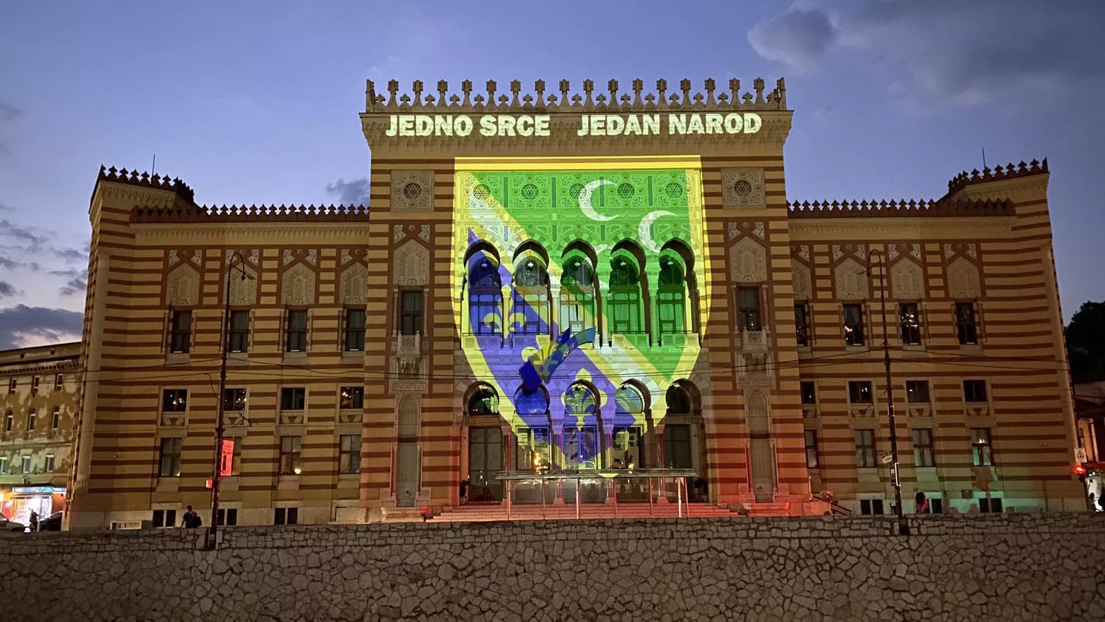 SARAJEVO, (Patria) - Sarajevska Vijećnica je večeras osvijetljena bojama nacionalne zastave sandžačkih Bošnjaka u znak solidarnosti i podrške Sandžaku koji se posljednjih dana suočava sa velikim izazovima usljed epidemije koronavirusa, javlja BHRT.