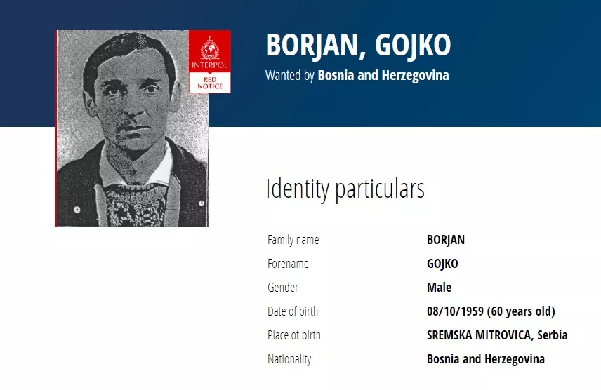 SARAJEVO; (Patria) - Interpol je raspisao međunarodnu potjernicu za Gojkom Borjanom, osumnjičenim za ratni zločin počinjen na lokalitetu Hrgar kod Bihaća.