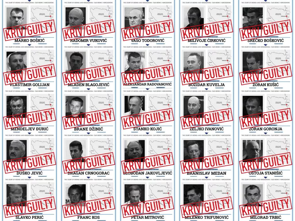 Za zločine protiv čovječnosti, Sud BiH je osudio Franca Kosa na 35, Stanka Kojića na 32, Zorana Goronju na 30, Božidara Kuvelju na 20, Vlastimira Golijana na 15, Dragana Crnogorca na 13, Marka Boškića na 10, Mladena Blagojevića na 7, Vasu Todorovića na 6, Milivoja Ćirkovića na 5 i Zorana Kušića na 5 godina zatvora. Srećko Bošković je dobio 8 godina za zločin protiv civilnog stanovništva. Radomir Vuković, Petar Mitrović, Aleksandar Radovanović, Branislav Medan, Brane Džinić, Slobodan Jakovljević, Milenko Trifunović, Duško Jević, Mendeljev Đurić, Milorad